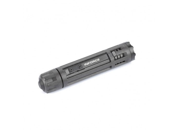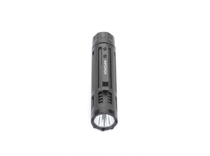 The INFORCE 6vx 200-Lumen LED Flashlight is designed for military and law enforcement personnel who demand a compact, durable illumination tool that delivers lots of punch. The ultimate in multi-functionality, the 6vx provides the ability to customize the light to your preferences by reversing the high/low power setting to low/high or disable the strobe, if desired, and includes momentary and lockout features. The fiber composite body is lightweight and durable. Its patented heat-releasing venting system maximizes LED performance and keeps the light cool even with prolonged use. MIL-STD-810F certified.