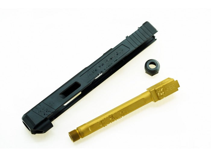 Guns Modify - SA G34 Stainless Steel RMR Slide Gold Threaded Barrel Set for Tokyo Marui G17 GBB