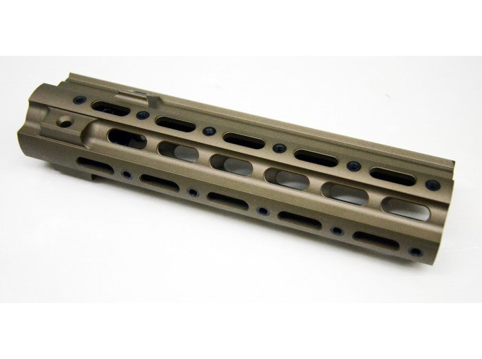 - Threaded inserts at 3/6/9 o'clock positions serve as mounting points for rail sections